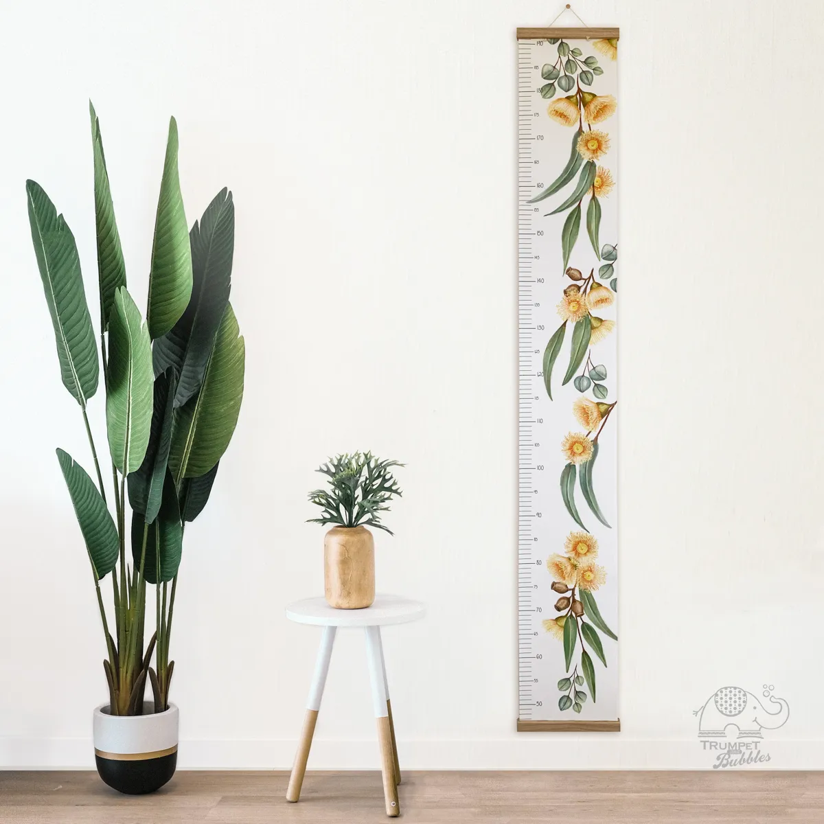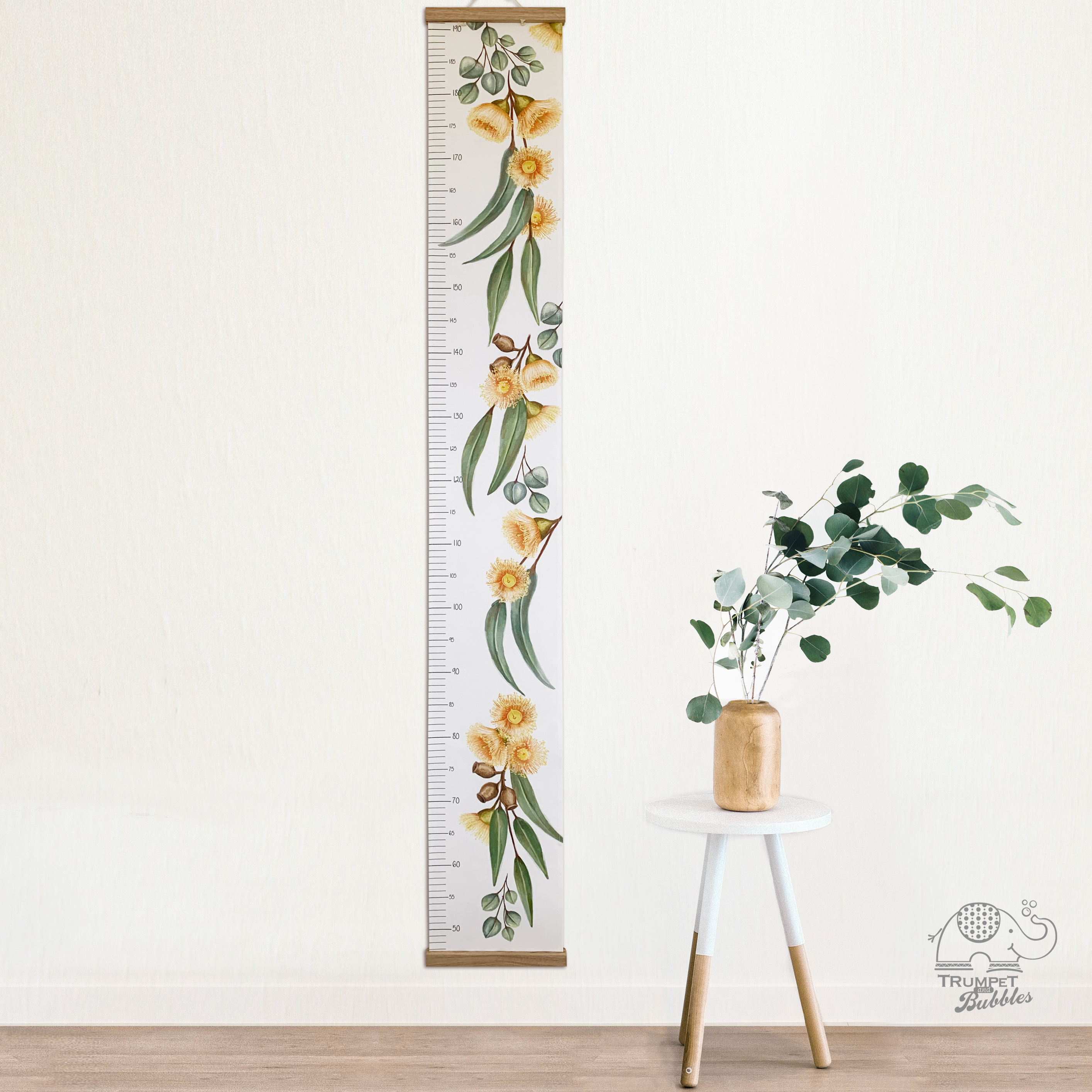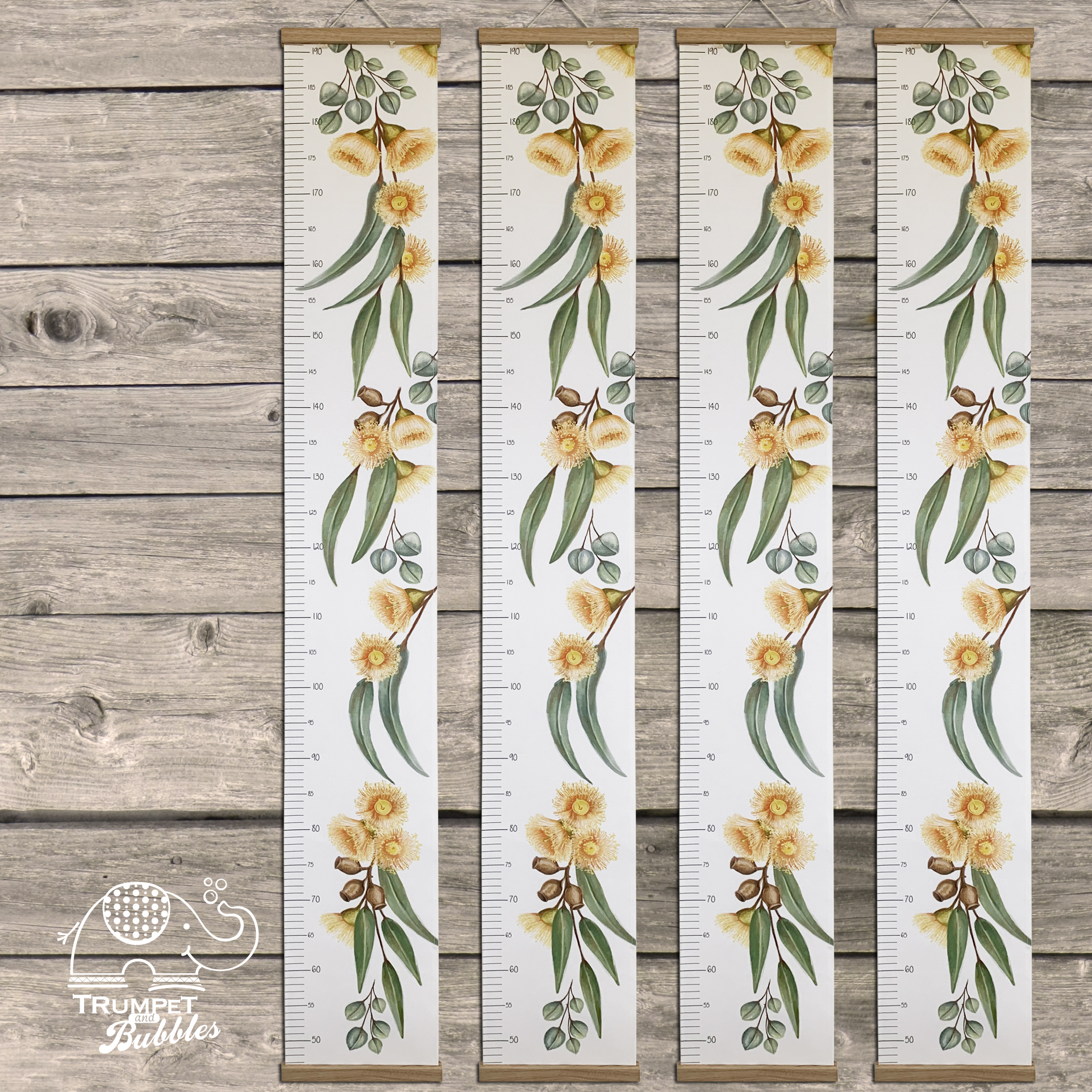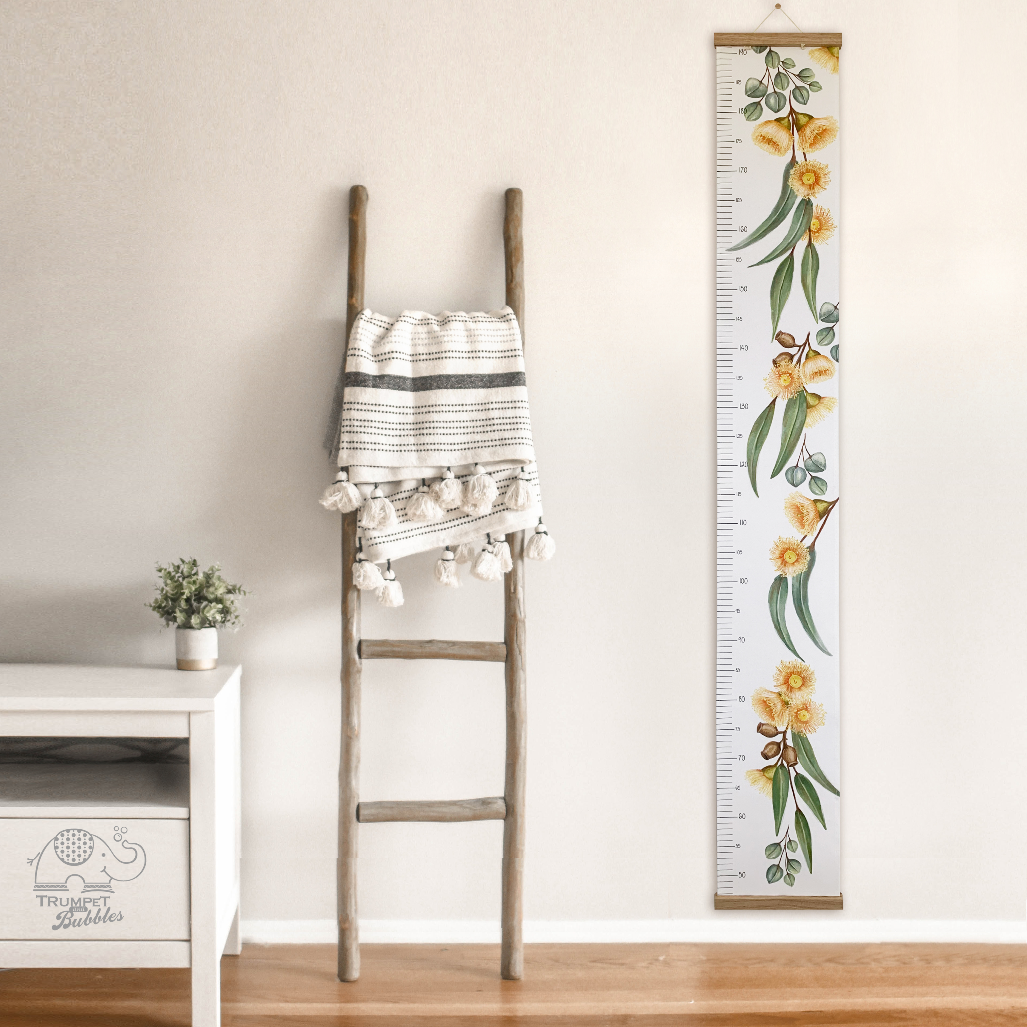 Fabric Height Charts are a beautiful way to decorate your little ones bedroom or play room, while watching them grow. Trumpet & Bubbles Height Charts are made from Organic Cotton Canvas, finished with Tasmanian Oak timber picture hangers top and bottom.