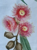 This beautiful design features gorgeous little pinkish-red gum blossoms among lovely eucalyptus leaves.